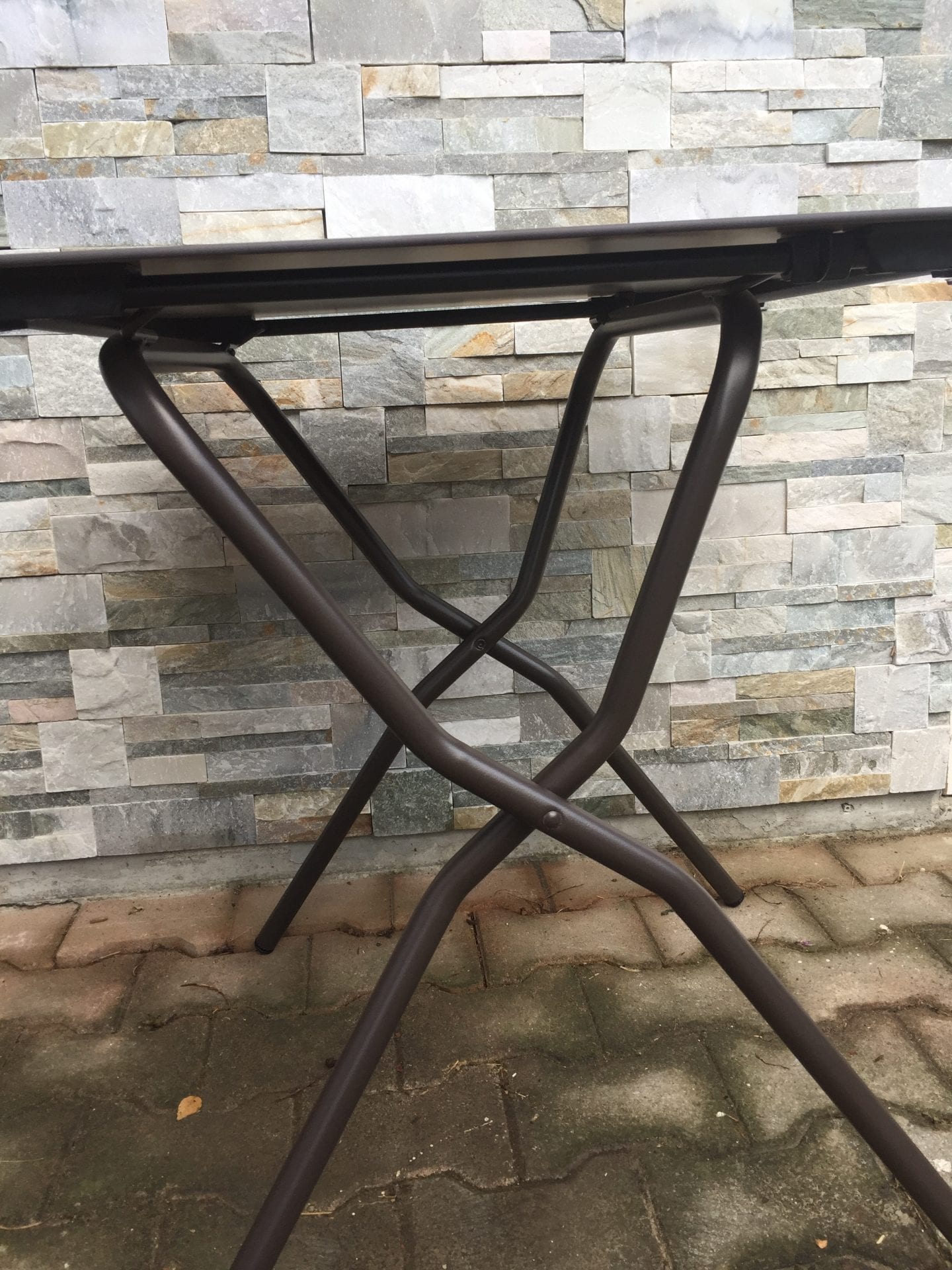 La table carrée est bourrée d’astuces, elle est pliante et est conçue pour dégager le maximum d’espace pour les jambes. Elle offre un vrai confort. C’est mon mari qui dit merci 😉 avec son mètre 85 pas facile de se glisser sous une table pliante. Celle-ci lui permet d’avoir réellement de la place et pouvoir profiter d’une assise confortable.