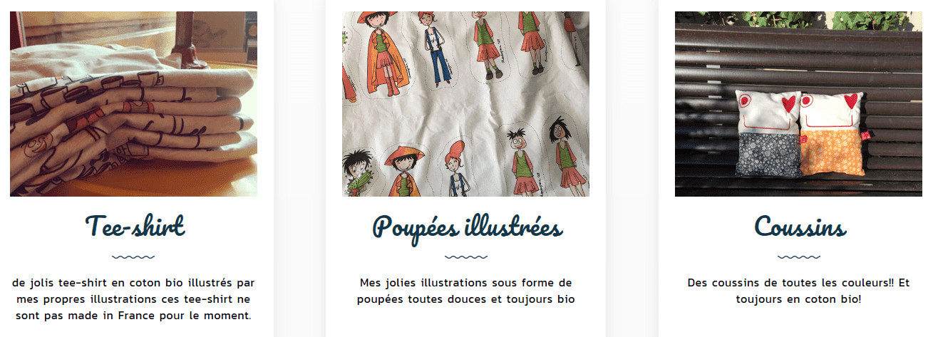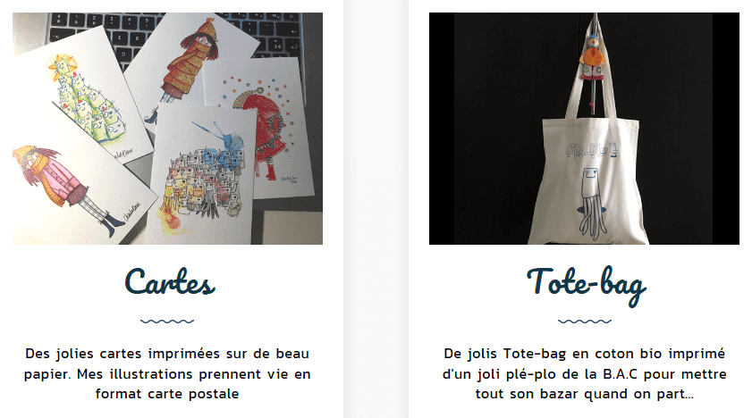 Chantal propose également des accessoires, des tee-shirt, des cartes postales, des coussins et des sacs…